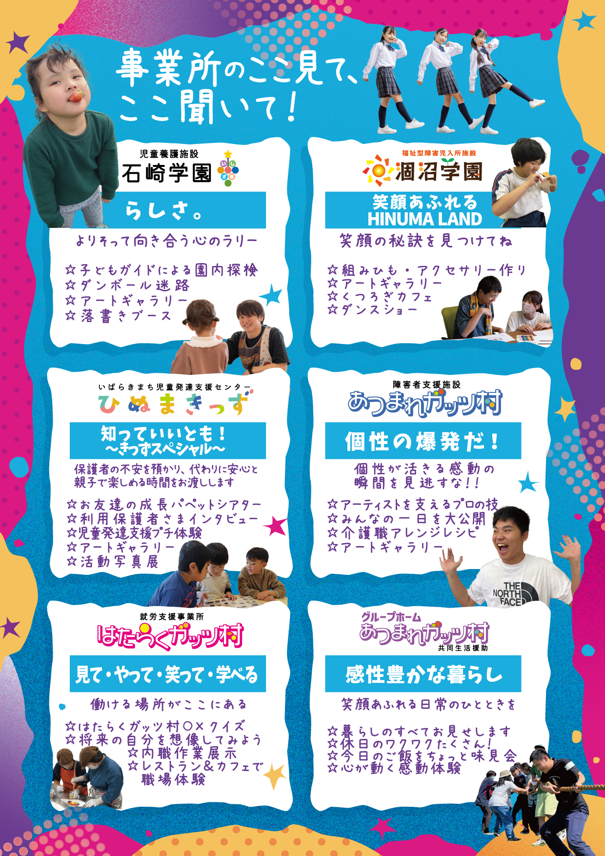 茨城補成会は、障害のある子どもから大人まで、一人ひとりの「自分らしく生きる」を支える社会福祉法人です。今回当法人では、福祉の現場を実際に「見て」「体験できる」イベント 「補成会Live!」 を開催いたします。就労支援・生活支援など、さまざまな分野の事業所を一度に見学・体験できる貴重な機会となっております。