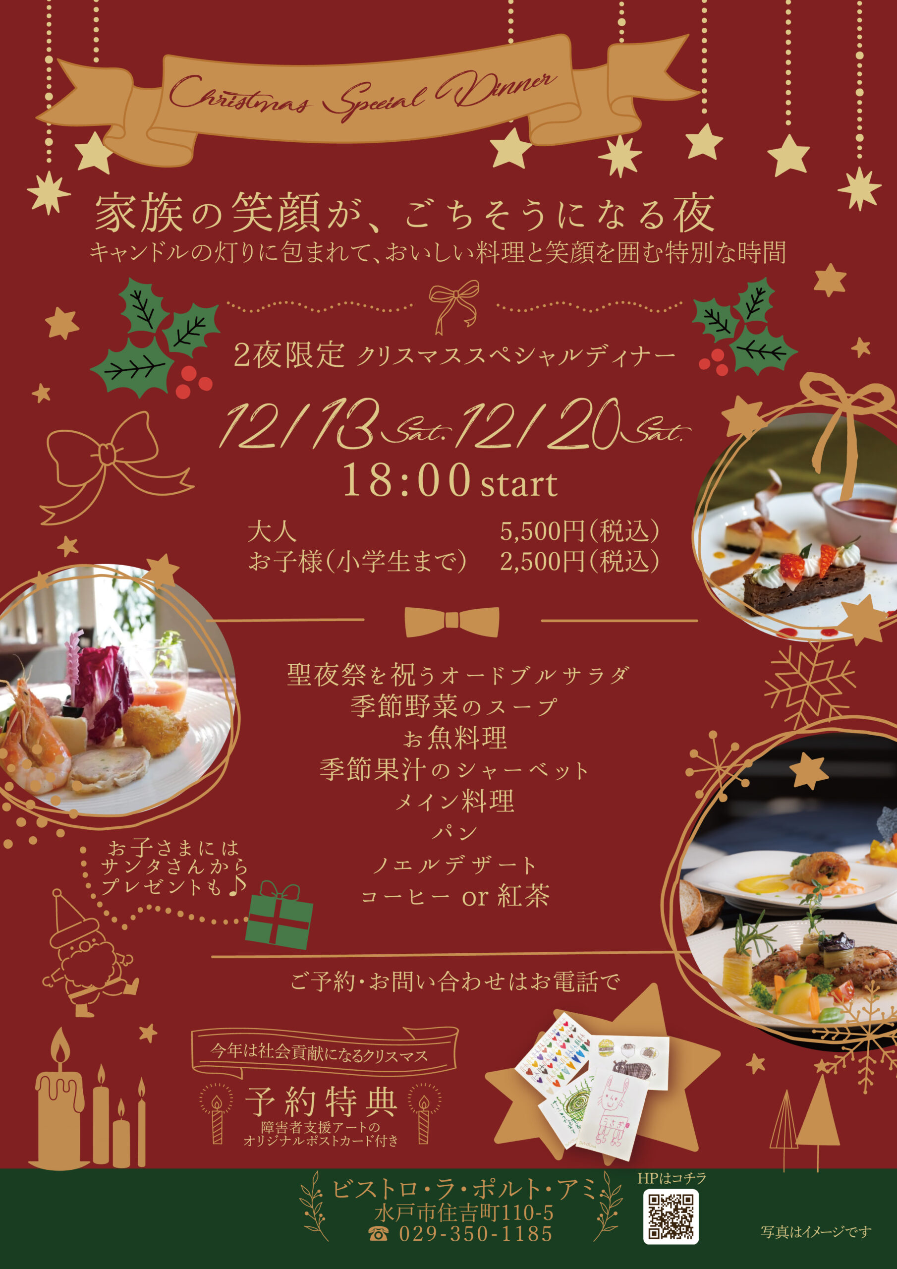 茨城県水戸市のフレンチレストラン「ビストロ・ラ・ポルト・アミ」では、家族や友人と過ごす特別な時間にぴったりの「クリスマススペシャルディナー2025」を開催します。