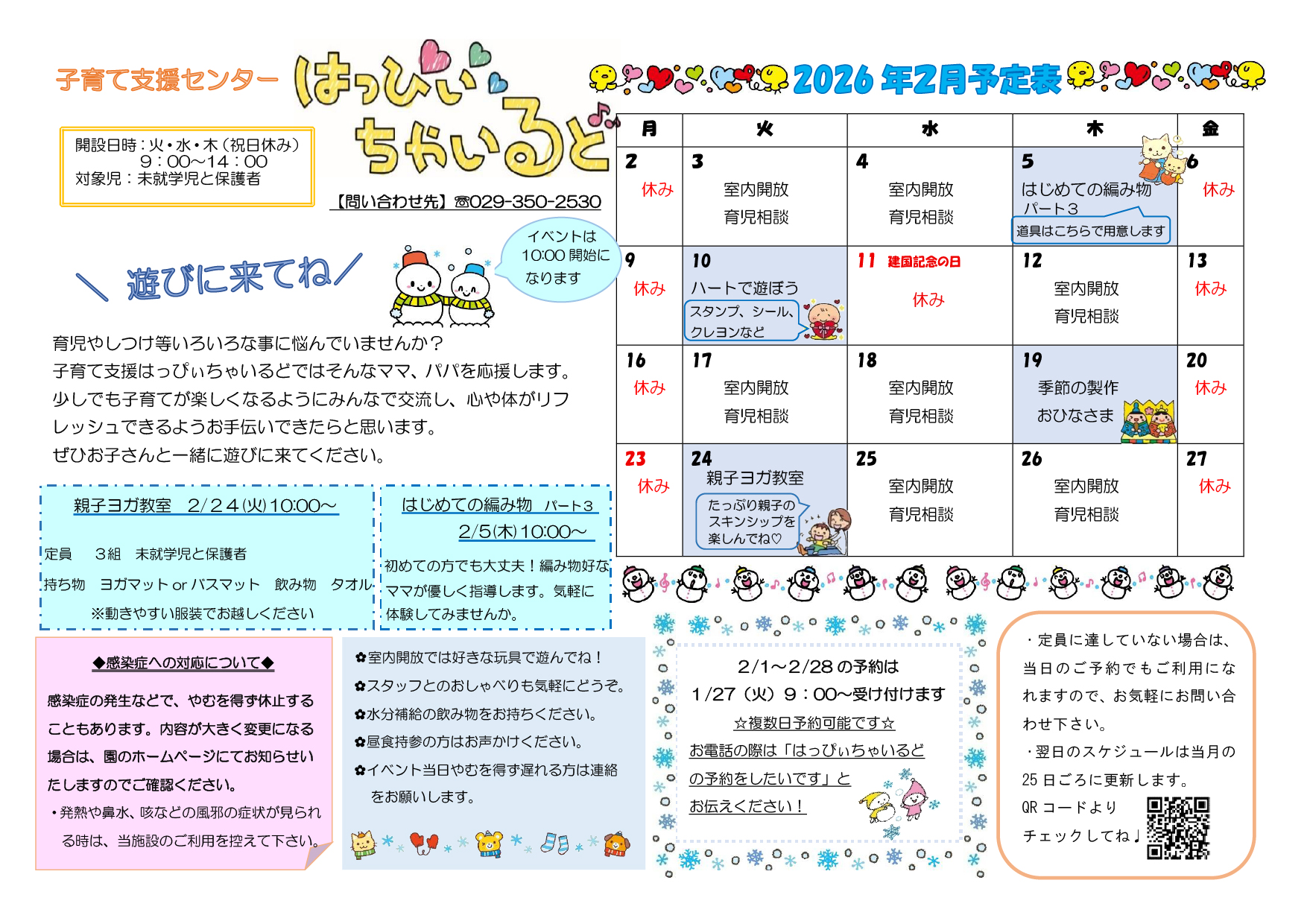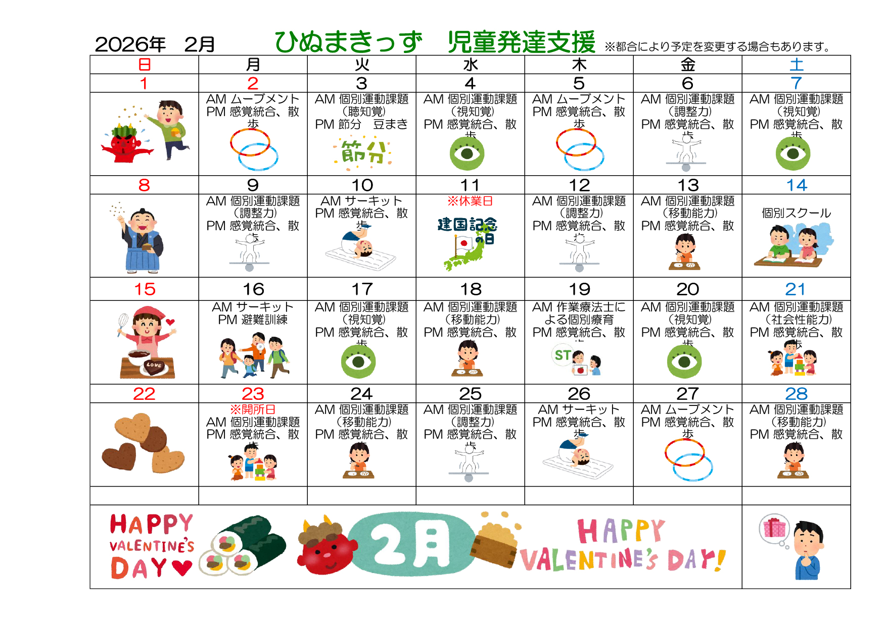 ひぬまきっず、2月の予定表をお知らせいたします。